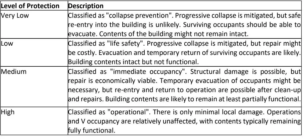 Table 2. CSA S850-12 Building Level of Protection Definitions